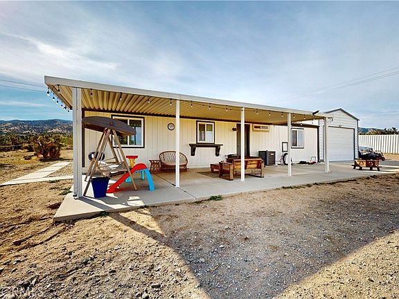 Here is your chance to own an amazing secluded and private home about 600 ft from paved road serene hills in Pinon Hills. As you enter you will be welcomed by a vaulted ceiling ,a spacious living room, a dining room and open to a fabulous farmhouse style kitchen. Lots of counter space in the kitchen island. Quartz countertops, hexagon white tile backsplash.( Refrigerator doesn’t stay) Stainless steel appliances: microwave, freestanding stove, and dishwasher. Bedroom #1 has carpet, ceiling fan and floating shelves and a walking closet. Bedroom #2 has carpet flooring, and the window faces the front of the house. Laundry room has access to the backyard. Hallway bathroom has a shower and tub combo with a quartz sink. Primary bedroom has a vaulted ceiling and feels very spacious with a window above the bed to let in natural light. Primary bathroom also has a shower and tub combo with a beautiful tile wall. Included in this fabulous property is a very large 40 X 36 detached garage / workshop with its own electric panel. A 40' high cube cargo premium container is also included with this turnkey home. This property has the best internet with lightning speed. Could be a horse property just bring your horses. 10 minutes to hwy 138 and on paved roads. The back patio offers 360 degree views that go on forever. A wedding was performed on the property and was able to accommodate over 100 guests who enjoyed a stunning desert sunset and easy parking. Check out the 3D tour.