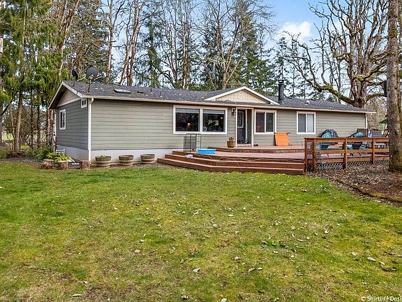 Lovely 3 bed/2 ba, light and bright 1848 SF double wide mani home on a spacious 1.65 acres (real property). Private location w/ detached 2 car, oversized garage/shop and small shed in the backyard. Decks in front and back for entertaining. View the seasonal pond from the front deck. Open concept, granite kitchen countertops, stainless steel appliances, eat bar, laminate flooring (wood replicate) throughout. Master suite w/ double closets, owners bath w/ double sinks, tiled, walk in shower.