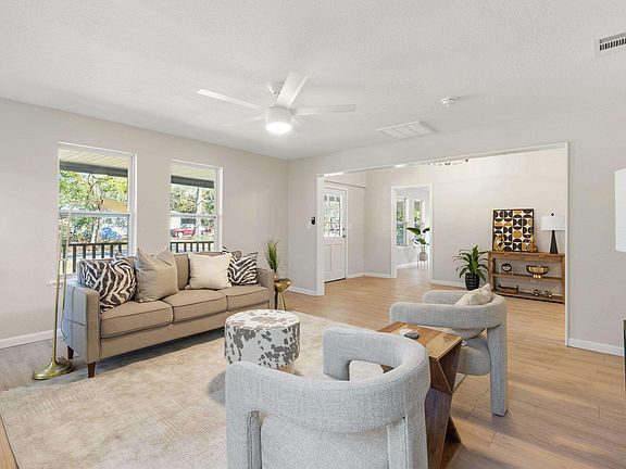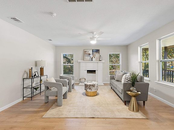 Arrive at a spacious 1.28 acre lot with no HOA, where freedom, privacy, and possibility come together. With ample room for ATVs, trailers, boats, and additional parking, this property offers the flexibility of land ownership without restrictive covenants. A full front patio welcomes you as you step inside and into a large, open foyer that immediately sets the tone for the home. To the right, a generously sized living room filled with natural light provides the perfect space for relaxing or entertaining. To the left of the foyer, the private primary suite offers a peaceful retreat with abundant natural light, a spacious closet, and its own en suite bathroom. Continuing down the hall, two additional bedrooms are thoughtfully positioned away from the primary suite, ideal for family members, guests, or a home office. The home then opens into a warm eat in kitchen nook that flows seamlessly into the fully updated kitchen, featuring new appliances and modern finishes designed for both everyday living and hosting. Just off the kitchen, the third bedroom includes an attached bathroom and a separate entrance, creating an ideal setup for guests or added privacy. Step out back and experience the true highlight of the property, the expansive backyard and full 1.28 acres of land offering endless possibilities for outdoor living, recreation, or future customization. This beautifully updated 3 bedroom, 2 bath home is completely move in ready with a new roof, new HVAC system, new hot water heater, new flooring throughout, and new appliances. The property also qualifies for 100 percent USDA financing, making this a rare opportunity to own space, flexibility, and modern comfort all in one.