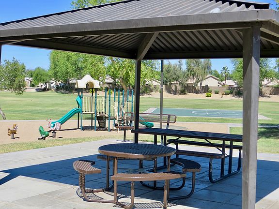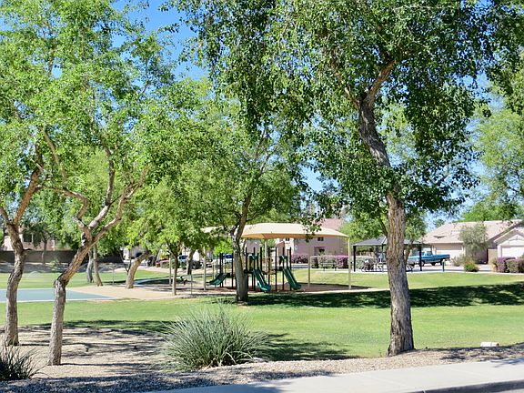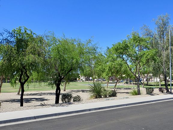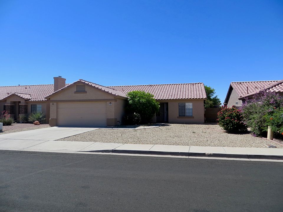 Cute 3BD/1.75BA home is available in one of the fastest growing areas in town! Split floorplan, with great room, large eat-in kitchen (refrigerator and island included), owner's suite with bay window and owner's bath with walk-in shower, dual sinks, and spacious walk-in closet. Vinyl plank flooring and vaulted ceilings throughout. The large backyard is a blank canvas for you to create your backyard oasis. LOW SRP bills with a paid off OWNED solar system. Newer AC system and brand new compressor. Great location with close proximity to Loop 101, Westgate Entertainment District, AZ Cardinals Stadium (home of SB 57 in 2023), TopGolf, tons of restaurants, Tanger Outlet Mall, Desert Diamond Casino and Crystal Lagoons Island Resort and Mattel Adventure Park (coming soon). Come take a look!