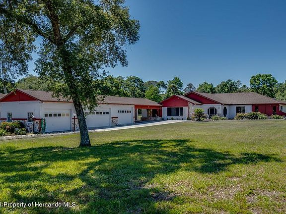 Active with Contract, accepting back up offers. Dreaming of extra garage space... look no more. This 4 bd, 2 ba, pool home located on 1 Acre features a detached 6-car garage 54 x 23 for 1,242 sq ft. with 3 garage door bays, plus 2-car carport 23 x 26 for 598 sq ft and an additional workshop behind the house. Vacant and ready for you to make it your own. Roofs replaced in 2017. Quiet well kept secret of estate-style homes on 1-care lots in Spring Hill and close to shopping and a quick commute to Tampa. Hurry this will not last long!