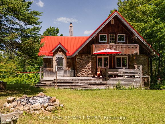 A Home With History - A Setting With Soul. Nestled on a beautifully treed lot, this beloved 4-season chalet is more than a home - its a sanctuary where generations have gathered and the warmth of a wood-burning stove has welcomed family and friends. Just minutes from Devils Glen Country Club, Nottawasaga Bluffs Conservation Area & only 20 mins to Collingwood, this property offers the perfect blend of seclusion & adventure - all within 2 hours of Toronto. From the moment you arrive, you'll feel a sense of tranquility - classic white pine board & batten siding & a red steel roof blend seamlessly with the natural surroundings. Inside you're welcomed by a large mudroom with built-in closet organizers. The open concept kitchen, dining, and living area creates a warm and inviting atmosphere bathed in natural light. The main floor features a comfortable bedroom, perfect for guests or accessible living. Upstairs is a true retreat, offering 2 cozy bedrooms and a spa-like bathroom with a large soaker tub. The lower level is the ultimate space to relax and entertain. A wood-burning stove casts a gentle glow, making it the perfect spot to gather with a hot cocoa or favourite cocktail for a classic après-ski experience. Walkout to the hot tub, where you can soak under a canopy of stars, breathing in the fresh country air. A bonus room on this level offers additional space for guests or a recreation area. Beyond the home, nature lovers will find endless inspiration. Sip your morning coffee on the expansive deck, watch wildlife thrive from large windows, or explore the multiple outbuildings; perfect for a bunky, sauna, or creative studio. Surrounded by towering trees, this is a peaceful retreat where you can truly escape the city and reconnect with nature. If you dream of ski weekends, peaceful country living, or a retreat to recharge, this enchanting property is ready for its next chapter whether you choose to embrace its vintage aesthetic or update it to your personal taste.