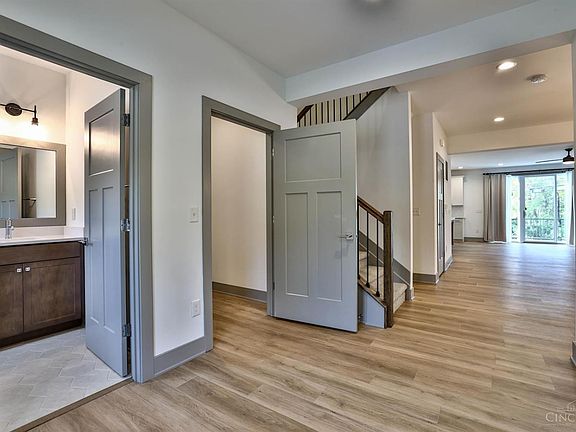 Stunning townhome in Blue Ash, luxury development by Ashford Homes, built in 2022. Open gourmet kitchen offers quartz countertop, wood cabinets, large island, walk-in pantry, designer lighting. Open living room with gas fireplace, open dining room with walk-out to Trex deck. 1st floor home office/study with French doors for privacy. Large primary suite with large walk-in closet, double vanity in primary bath. 2nd floor laundry. Oversized 2 car garage, lower level offers opportunity to add additional living space. Great storage and space to add an elevator. Situated close to Summit Park, Blue Ash Rec Center, highways, shopping and dining.