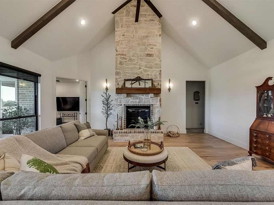 Located on a private cul-de-sac, this 2021 John Schedcik Custom Home has so many upgrades and amenities! Beautiful white oak hand scraped wood floors and custom trim throughout. Interior custom solar shades. Soft close cabinets. Five burner gas stove, convection microwave and double ovens. Quartz countertops in the big, open kitchen. Master bathroom has 6' tub. The fourth bedroom is currently being used as a media room. Oversized laundry room with sink and lots of counter space. Oversized pantry. Three car garage has a split system for HVAC and is extra deep. Hallways and doorways are ADA compliant. Epoxy flooring in garage and on patio. Flagpole in front of the house has automatic dusk to dawn lighting. The light, bright neutral colors are just waiting for a new owner to add their personal touches. And the acreage allows for unobstructed views and space to add a pool, RV or horses! A must see!
