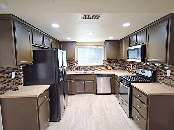 This beautifully upgraded 4-bedroom, 2-bath home features a cozy fireplace, a modern entertainment center, and efficient natural gas. Recent updates include new flooring throughout and fresh stucco on the exterior. Enjoy privacy and security with gated yards, perfect for relaxation and entertaining