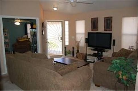 WOW!! Beautiful light and bright 2 bedroom PLUS DEN with double doors home located on an interior north/south lot in popular Mesquite Canyon! Big backyard! Open GREAT ROOM floor plan with vaulted ceilings, bay window, split bedrooms. Wood laminate flooring at entry & kitchen! Eat in kitchen with pantry. Master Walk-in closet. Covered patio and gazebo with saltillo tile. Tile roof, ceiling fans, sunscreens. Popular community with parks, sports court, kids play and bbq areas! Easy freeway access, convenience to shopping, restaurants, hospital! Washer/Dryer/Refrigerator included.