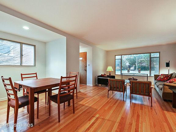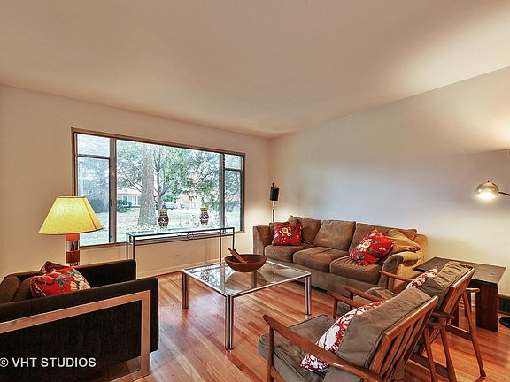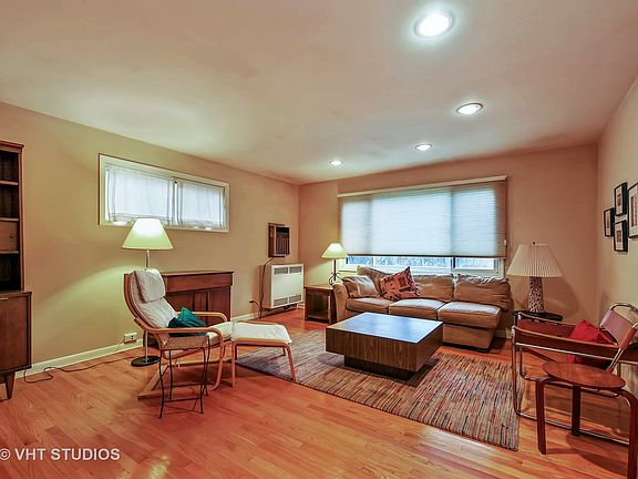 Mid century modern split level in great area. Bathrooms and kitchen need updating bit otherwise in good condition. Newly refinished wood floors in Living room, dining room. On dead end street near Central Park, low taxes, excellent schools (walk to St. Joan of Arc), close to Old Orchard shopping and expressway