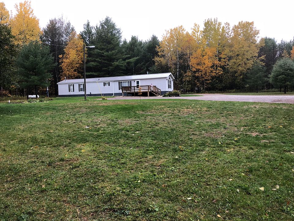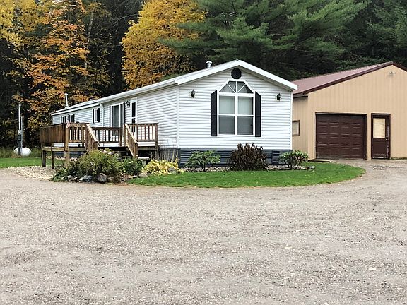 Private nicely landscaped wooded setting on 1.82 acres, this well maintained mobile home has 2"x 6" exterior walls, blown~in insulation, new maintenance free metal roof, a 12' x 16' deck and a 30' x 40' x 10.5' pole barn w/ electricity and a concrete floor. This would make a great place to store your weekend toys or create a workshop for the full time resident. This property is located within a mile of Burt Lake and the snowmobile and ATV trails. It's cute and clean and has an open~concept!! Come take a look!!!!