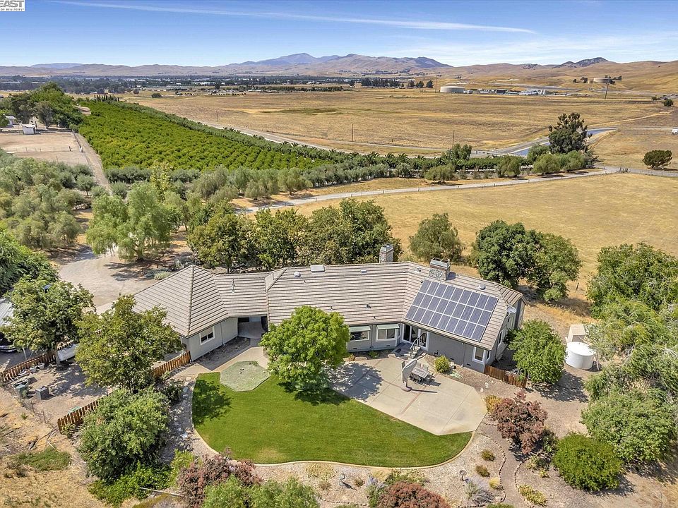 HUGE PRICE REDUCTION. Exquisite Custom 2,696 square foot recently remodeled home, occupied by the original owner who designed and built it. Home sits on 5.9 USEABLE ACRES at the end of a quiet dead end street in rural Southeast Livermore. Expansive views from every room. Impressive entry with shining Hickory Hardwood Floors +Skylight The Formal Living Room features large windows to enjoy the views of Mount Diablo, Morgan Territory and Brushy Peak. Many designer touches including a beautiful fireplace. Large F/R with sliding glass door to the outside patio and sweeping views of surrounding hills. Gourmet Kitchen features Stainless Steel Appliances, lots of counter space/pantry and granite counters and tile backsplash. Large garden window above sink allows you to see the stunning views. The Huge Primary Bedroom Suite at one end of the house offers privacy and large, bright windows. The Den/Office has office furniture and built-in bookshelves. The Beautiful Hickory Hardwood Floors are throughout much of the house. Spacious 3 Car Garage has a large attached workshop and 240V Outlet for Electric Vehicles. There is an RV Carport. Owned Solar. Excellent Cell and internet Service. Minutes to shopping and 580 Freeway. Excellent well water flow with ozone purification system.