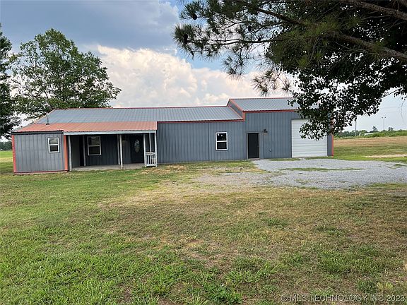 STEEL FRAIM HOUSE WITH METAL SIDING AND ROOF. COVERED PORCH AND PATIO.NEW SEPTIC SYSTEM, NEWER FLOOR COVERING, RUSTIC STYLE, VALTED CEILINGS, MUD ROOM OFFTHE GARAGE, STORAGE FLOORED ATIC, TALL GARAGE.