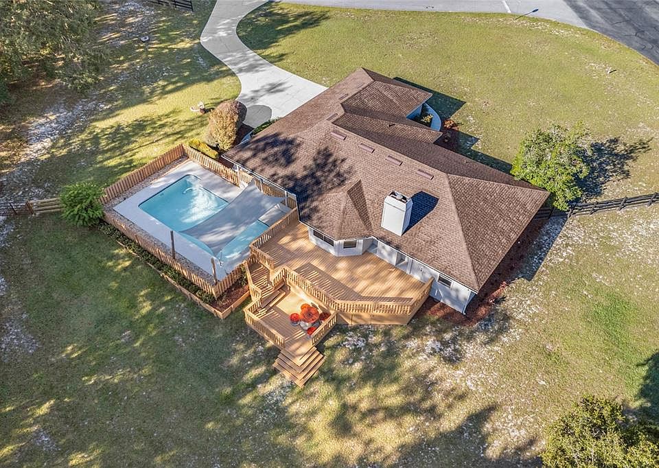 Stunning 4BR/2BA Pool Home on 1.81 Acres in The Meadows of Kanapaha! This beautifully upgraded home combines modern comfort with quiet country charm. Featuring a durable Hardie board plank exterior and tons of natural light, it offers both style and functionality. The sparkling pool includes a new PebbleTec surface, pump, filter, and plumbing, an overhead shade cover, and a new two-level stained wooden deck—perfect for relaxing or entertaining. The pool is also fully fenced for child safety. The deck offers enclosed storage below and is surrounded by colorful Lantanas that attract butterflies. Inside, enjoy fresh interior paint (including ceilings), new carpet in the bedrooms, luxury vinyl flooring throughout most of the home, and an oversized indoor laundry room with added cabinetry. The primary bedroom includes an additional flex space perfect for an office. The kitchen features a new fridge and dishwasher. Major updates include a 2023 4-ton Trane AC, new roof (2022), new well pump, new water softener, and a new garage opener system with a generator plug and transfer switch. The fenced backyard includes a large gate for vehicle access. Ideally located just 5 minutes to I-75, Butler Plaza, or Haile Village Center’s shops, farmer’s markets, and festivals—and only 15 minutes to UF, Shands, the VA, North Florida Hospital, and downtown Gainesville!