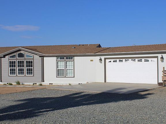 HUGE PRICE REDUCTION! This is a rare find for the most fortunate! Nearly 3000 Sq Ft, Triple wide Manufactured home built in 2005. Enter foyer and into a large living space. You will fall in love with the split floor plan, giving additional privacy to the Main bedroom with an on-suite sitting area and large walk in closet. Master bath has double sinks and a spa tub with separate shower. This home offers two dining areas for formal and casual dining. Kitchen is centrally located with a walk-in pantry, large Island, breakfast bar and newer appliances. The spacious Family room is just off the kitchen and can accommodate a very large party. The three other bedrooms are just off the family room, one offers it's own bathroom making it a Jr Suite. The guest bath is conveniently centered between the other two rooms. Indoor laundry leads to attached two car, extra wide, fully finished garage. Property is fully fenced with double wide drive through gates. Beautiful quartz counters are in the kitchen and baths. Large windows throughout provides natural lighting and beautiful views of the surrounding hillsides and mountain.