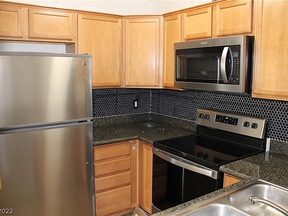 Home sweet home! Upstairs 2 bedrooms and 2 full baths, corner unit with vaulted ceiling in The Lakes. Serene community with two pools and spa. Completely remodeled condo with brand new stainless steel appliances, new washer & dryer, new carpet, new interior paint, new fan in dining area. Gorgeous unit with vaulted ceiling and sky light in master bath, plenty of natural light throughout. Lease includes water and trash. Assigned covered parking and plenty of guest parking. Central location with easy access to 215 freeway, Downtown Summerlin, and a direct access on Desert Inn to the Strip in 7 miles.