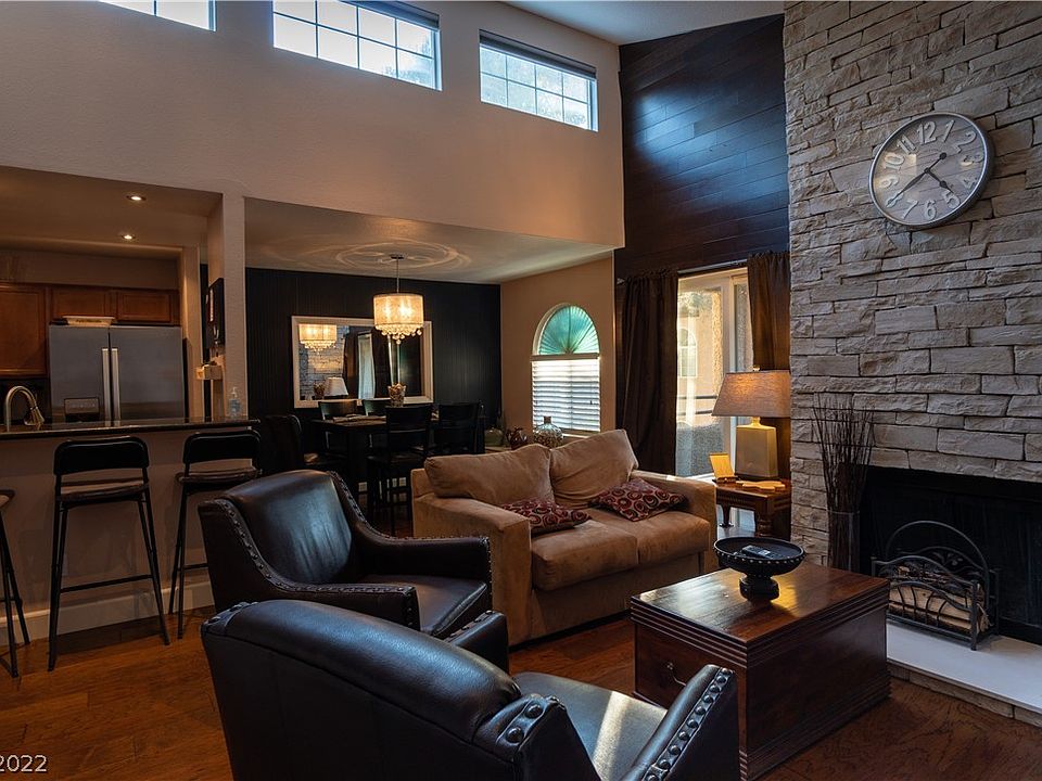 Shorter terms considered for less than 1 year = $2000 per month FULLY FURNISHED CONDO IN THE HEART OF WEST LAS VEGAS! Highly upgraded three-bedroom home overlooking a beautiful resort-style community pool. Vaulted ceilings, engineered wood floors, granite counters, stainless appliances. Dramatic decorator features throughout. Ideal location in The Lakes. Close to Downtown Summerlin and the excitement of The Las Vegas Strip. All furnishings, TVs, and housewares included. A great value!