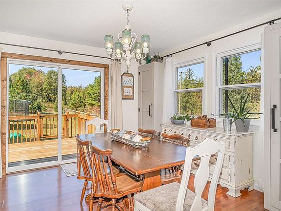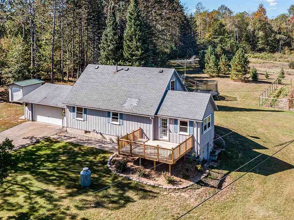 RURAL HARRISON - Perfect country setting! This 3BR/2BA chalet includes appliances, newer wood laminate flooring throughout, two nice decks, 2-car attached garage, and outdoor woodstove w/propane backup. Gorgeous 20 acres with pond, small tributary of the Cedar River running through, and newer 28x64 pole barn with hayloft, 16' sidewalls, & 12' door. Great hunting area and even includes a hi-rise deer blind. Sellers are including the mineral rights, so use the oil lease to help make payments! $265,000