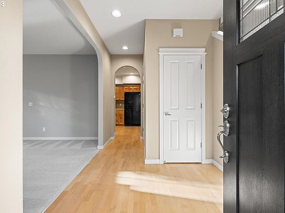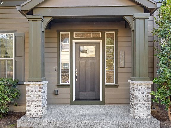 Surrounded by like homes is this wonderful layout of 3 bedrooms, 2 1/2 bath, living room with gas fireplace, kitchen with eat bar and private fenced back patio plumbed for a hot tub. 2 car garage with built-in cabinets. Home just professionally cleaned and ready to move into. All appliances included. 1 Block to neighborhood play area and surrounded by common area and spaces to play. [Home Energy Score = 7. HES Report at https://rpt.greenbuildingregistry.com/hes/OR10145741]