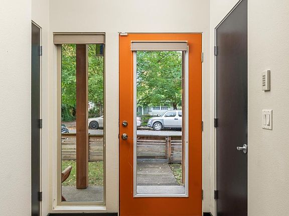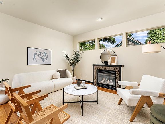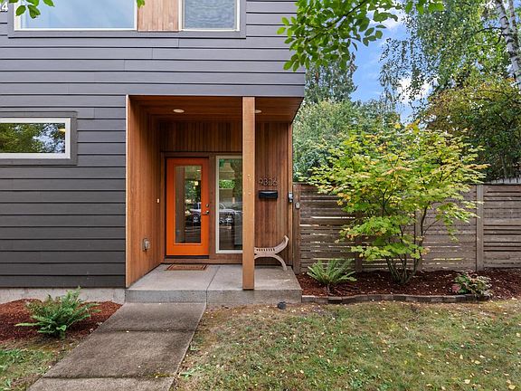 Discover this bright and inviting contemporary home in the heart of St. Johns, offering the perfect blend of modern design and everyday convenience. Enjoy the peaceful vibe of the neighborhood, while still being just a short stroll from local shopping, restaurants, and grocery stores. (Walkscore 74/ Bike Score 91!) The main floor has a spacious open floor plan, with high ceilings and large windows that fill the home with natural light. Enjoy the cozy gas fireplace in the winter and AC in the summer. The kitchen features sleek quartz countertops, stainless steel appliances, and a central island with seating, perfect for casual meals or entertaining. Off the dining room you have access to the side yard and deck, an ideal setup for outdoor dining, summer barbecues, and gardening. Enjoy a home office on the main with its own exterior entrance! Upstairs, the primary bedroom offers vaulted ceilings and views of the trees. The en-suite bathroom has double vanities, a walk-in shower, and a large walk-in closet. Two additional bedrooms share a Jack-and-Jill bathroom and the laundry room is conveniently located upstairs. Updates include: New hardwood floors, new tankless water heater, new interior & exterior paint, new back yard deck, and new fencing next to downstairs room and shelter. Home Energy Score: 9! You will love this beautiful St. Johns gem!