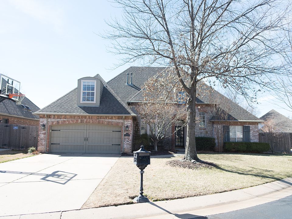 South Tulsa home in gated community, Jenks Schools! Open LR/kitchen area. Built-ins flank the beautiful fireplace. Tons of windows, stylish fixtures, on-trend paint & awesome floors! 3 beds, 2 full baths & bonus room up. New A/C unit upstairs!