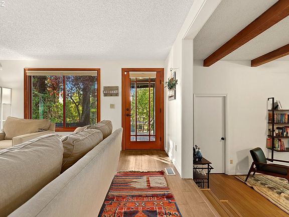 Updated ranch in sought after SW neighborhood. Cozy living room overlooks charming front porch with wood burning fireplace. Partially converted garage provides spacious family room. New flooring throughout and new carpet in spare bedrooms. Kitchen features new counters, backsplash, and Stainless Steel appliances. Slider off primary suite opens up to private fenced backyard. Enjoy relaxing in the hot tub or gardening in the sunshine. Close to parks, restaurants, and shops! [Home Energy Score = 5. HES Report at https://rpt.greenbuildingregistry.com/hes/OR10183998]