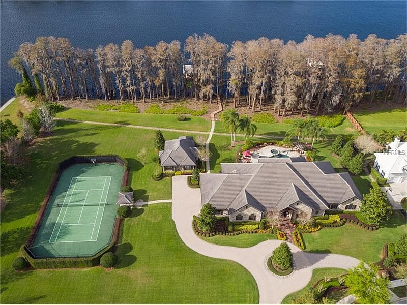 Welcome to 9327 Dole Circle, your ultra-private, lakefront estate featuring over 2.5 acres high and dry of ultimate seclusion and luxury. This custom masterpiece boasts superior craftsmanship and attention to detail throughout. Sprawling over 6000 sf total, the main house features 4 bedrooms plus office, sauna, and theater room, and 4 full baths, while the recently custom constructed guest house features another 2 bedrooms and 2 bathrooms living room and kitchen. The open floor plan is spacious; occupying a single story for ease of living and maintenance. You will find only the finest materials and finishes were used, including exotic marble, custom cabinetry, travertine tile, stone accent walls and custom window coverings. Each room offers stunning lake and garden views while the grounds are lushly landscaped and truly capture what an authentic Florida lifestyle is all about. Enjoy a round of tennis on your private sports court, or an evening sunset cruise from your private dock on Lake Isleworth, which is connected to the famed Butler Chain of Lakes. There is plenty of room to park the toys in the 4 car garage, and the peaceful cul-de-sac setting provides ample room to roam and play. Keene's Pointe offers an unmatched, established, Country Club lifestyle and is centrally located between the area attractions, highly rated schools, and the local best kept secrets of Downtown Windermere. This is a rare find and one of only two private tennis court compounds within Keene's Pointe.
