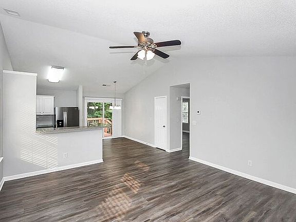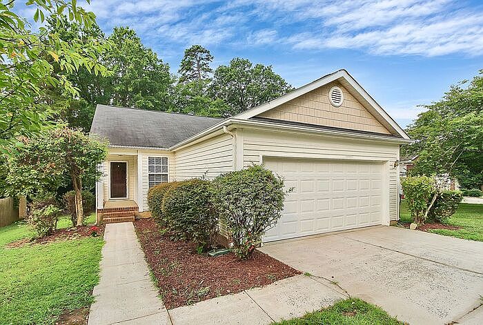 Great 3BD/2BA ranch home in Amber Ridge! Open living area with vaulted ceilings and bright kitchen with eat-in breakfast bar. Other kitchen features include stainless steel appliances and subway tile backsplash. Upgraded LVT flooring throughout, including bedrooms. Sliding glass doors open to private deck and yard backs up to wooded area for extra privacy. Attached two car garage. Perfect location with easy access to I-485. Don't miss out! Pets: Non-refundable Pet Fee of $250/pet + monthly Pet Rent of $20/pet Technology Fee: $20/Month This property allows self guided viewing without an appointment. Contact for details.