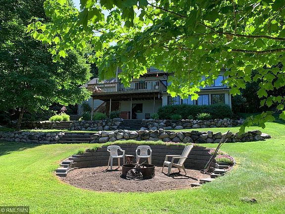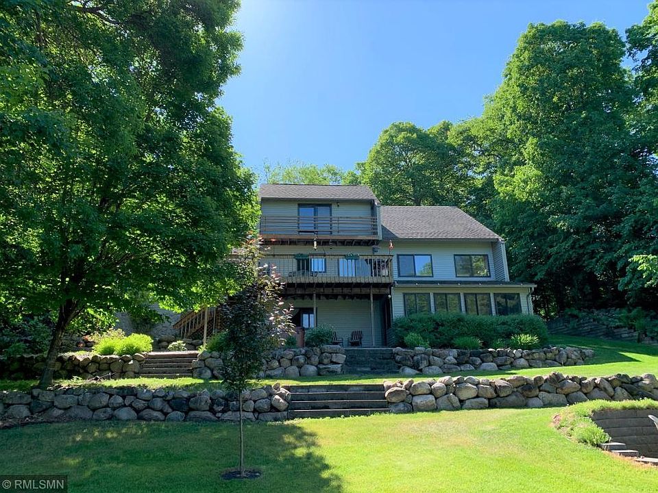 With gradual elevation and a sand beach you'll have complete privacy with over 270' of lake frontage on just under 3 acres. Gorgeous sunsets, manicured grounds with in ground sprinklers and lakeside entertaining offered with decking, hot tub, three season porch, and fire pit. This 4 bedroom home has recent updates with new lake side windows, appliances and the entire interior has been painted. Lower walk out level offers a taste of up-north with fireplace, wet bar/recreation room and a three season porch leading to the hot tub. Plenty of storage with an attached and detached garages and lakeside shed.