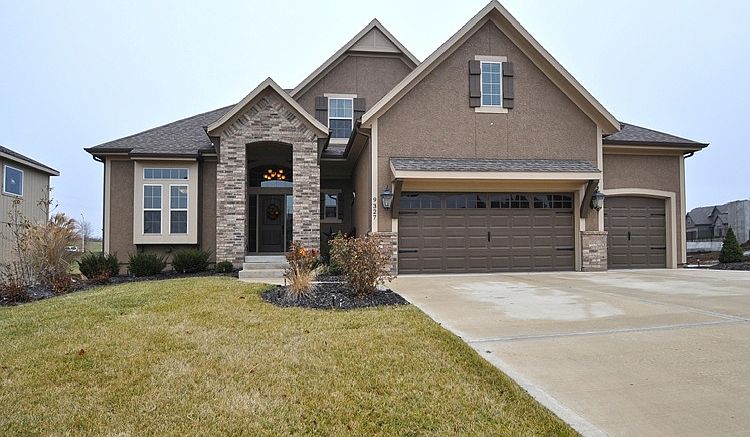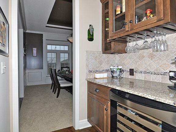 Better than New... Gorgeous 1.5 Story with Finished Basement only 2 year old!! 1.5 story with open plan, soaring 12' ceiling in great room trimmed with gorgeous 16" crown molding. Enjoy see thru fireplce to screened in covered patio, accessible from breakfast & master bedroom. Gourmet kitchen with granite, walk-in pantry... built-in desk inside, butler's pantry boasts built-ins & wine frig, plus a 4' x 10' island with undrmnt sink. Fabulous walk-in tiled shower in master bath (rain plus 2 regular heads). Main & 2nd level laundry rooms. Spacious/plentiful closets. Finished Lower Level with Media Room, Recreation Room, Full Bath & Kitchenette. Recreation Room kitchen features full size refrigerator & undermount sink with lots of cabinets. 120" screen in media room stays! Storage galore... Lower Level unfinished storage & additional finished walk-in closet over garage (could be hobby room). Nice size garage with extra deep 3rd bay. In-ground sprinkler & Google Fiber!