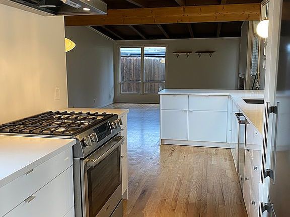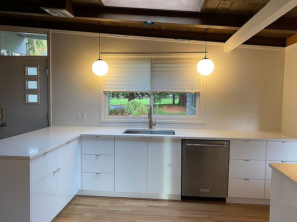 Listings powered by Tellus, the premier property management platform. Promote listings, screen tenants, and collect rent for free all in one place. This listing is for a furnished 2 bedroom, 1 bath mid-century modern home with newly remodeled kitchen available for rent located in the Portsmouth/St. John's neighborhood. This is a classic mid century home with a cozy open floor plan in around 1000sqft. The house includes a newly remodeled entertainers kitchen, open wood ceilings, a fully functioning wood stove, washer/dryer on site, WiFi (w/ a Tv Equipped With Hulu, Netflix, Amazon Prime), a fully fenced yard and patio space with a propane grill. The larger of the furnished rooms has a queen bed, a very large closet for two, an additional large dresser, enough space for a desk/workspace (although this furniture is not provided) and 3 large windows. The smaller of the furnished rooms has a full-size futon, a nice-sized closet, a dresser for extra storage and 2 large south/west facing windows. There is a full bathroom next to the bedrooms that has been remodeled.