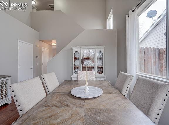 WELCOME HOME to beautifully maintain 2 story home in Colorado Centre Subdivision, where you are conveniently located to schools, parks, shopping and Fort Carson! The main level has bright and open floor plan, as you enter there what is now being used as a separate dining area with vaulted ceiling and continues to living room and kitchen with newer stone counters and plenty of cabinet space and dining area with walk out to patio overlooking fenced backyard. The upstairs has large master bedroom with walk in closet and adjoined bath with double sink vanity and granite counter, there are 2 additional bedrooms and full bath. Don't miss this beauty it will not last long call for your private showing today!