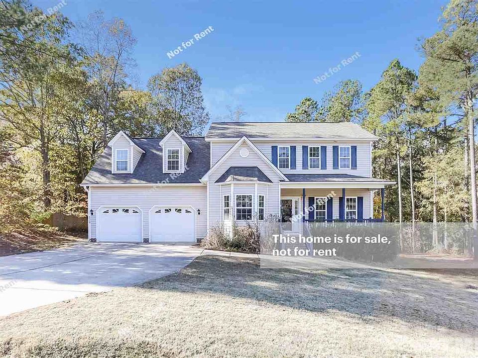 This Garner two-story offers a fireplace, kitchen granite countertops, kitchen breakfast bar, master bedroom walk-in closet, and a two-car garage.