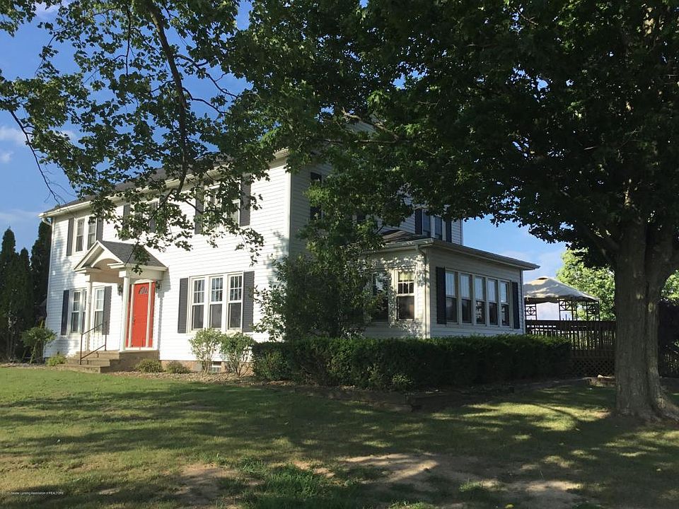 Country Living at it's best! This stately farm house offers over 2600 sqft., 5 large bedrooms & 2 full baths. Gorgeous Country Kitchen w/ solid surface countertops, tile back-splash & built-in eating area. Large, formal dining & living rooms make entertaining a breeze! Natural woodwork, cove ceilings & built-in display nooks accent these areas! You'll find hardwood floors under all of the carpet & updated windows throughout! New Drain field & Geothermal Heating & Cooling in 2016. 3 HUGE barns,all in great shape! Hip-roof barn has been completely re-enforced. Relax on the back deck & enjoy the country views & summer breezes! Don't miss out on this rare find in the Lowell School District!