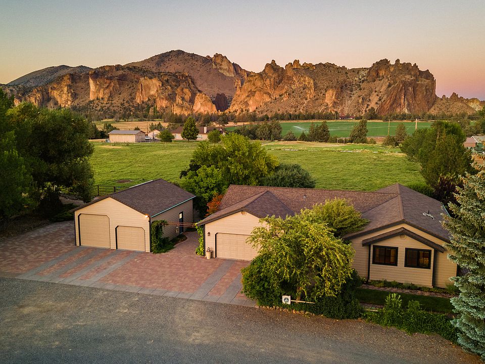 The Country Home You've Been Waiting For! Enjoy sweeping views of Smith Rock and Monkey Face from your backyard while sipping morning coffee in the sun or relaxing in the shaded afternoons on the covered paver patio. Tucked away at the end of a quiet road, this private 5+ acre retreat offers serenity, wildlife, and space to roam. The warm, light-filled home features Knotty Alder kitchen cabinets and wood accents, and an open layout. Recent updates include Milgard windows, Therma-Tru doors, refinished hardwood floors, and fresh interior/exterior paint (2023). Bring your animals and hobbies this property has irrigated pasture, a pond with dock, greenhouse, RV parking, and two finished-heated shops (25x30 and 50x50), one designed for easy horse stall conversion. Solar panels installed in 2024 feed back to Pacific Power. Minutes from Redmond and close to hiking at Smith Rock. Homes like this rarely come available! don't miss your chance!