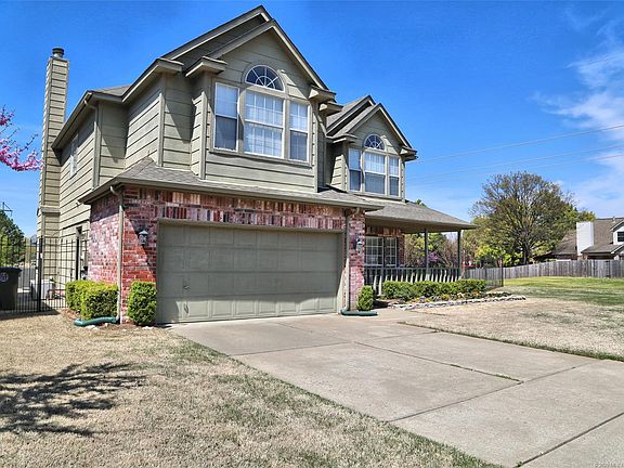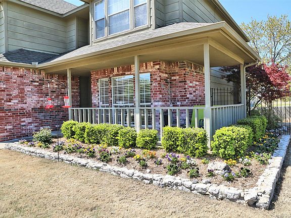 This roomy 2 story home has four beds, 2.5 baths, extensive hardwood flooring & shaded front sitting Porch. It is conveniently located in a quiet established family-friendly neighborhood w/numerous restaurants & shops nearby.Only about 20 min drive from downtown Tulsa & about 10 minutes from Jenks. The house backs to an undeveloped open green space to the west & sits beside a wide utility easement to the north. it features small flower gardens on each of its four sides.