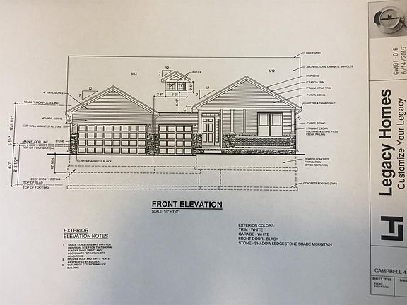 Legacy Homes presents the Campbell. This beautiful house offers 3025 finished square feet. 5 bedrooms 3 baths, cathedral ceiling from the kitchen to the great room giving it a truly open concept. Cozy fireplace, wet bar, first floor laundry, custom cabinets with soft close drawers throughout. It will feature wood flooring in the main area and tile in the bathrooms with a walk in tile shower for the master bathroom with dual vanity to make it that special retreat. All the countertops will be quartz. Master bedroom with tray vault ceiling and walk in closet. The finished walk out lower level has 2 of the 5 bedrooms and a full bath. There is a separate entertainment area for the wet bar and recreation room. The home comes with a covered porch, full sod and UGS, garage door opener and keypad, and sump pump. Built by Legacy Homes with 2x6 exterior wall construction, and 95% efficient HVAC that gives Legacy some of the best energy efficiency rating in the state. Call today!