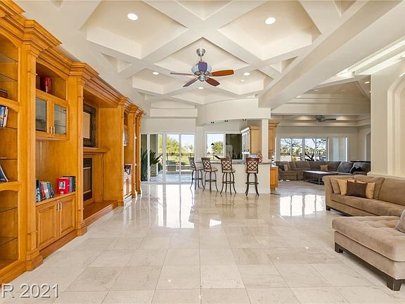 Amazing location! Inside the guard-gated "Canyon Fairways" community, this modern custom-built residence is situated on TPC golf course with spectacular mountain views. Enter through impressive steel double doors to an open and innovative floor plan with 6 beds; one is downstairs with a full bath, privately situated two executive office. Whether you're working from home, need space for virtual schooling, a personal gym, a family size theater room, this home has it all! The kitchen has Custom Cabinets, Granite Countertops, Wolf Cooktop Range & Appliances, Sub Zero Refrigerator-Freezer, and a breakfast nook. It has access to the formal dining room through a butler's pantry. Upstairs owner's suite balcony overlooks the golf course. Gorgeous high ceilings with dropped tray ceilings, marble flooring throughout. Entertain under the oversized covered patio in the back yard with pool/spa and BI-BBQ. Split 4 Car Garage from the side of the home and the main entry accented with stone.