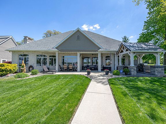 Welcome to a rare opportunity on desirable O'Connor's Point at Indian Lake. Situated on just over a half an acre, this 4 bedroom, 3.5 bath home offers 3,614 square feet of living space designed for comfort and style. Updates since 2020 include quartz countertops, fresh paint, new flooring throughout and a whole home generator, just to name a few. Enjoy beautiful sunset views from your patio, complete with retractable awning and outdoor kitchen. Automatic screens have been installed on the patio, allowing you the flexibility of enjoying the outdoor space is complete comfort, making entertaining fun and easy! From your dock, with newer hydraulic boat lift and electric PWC lift, you can enjoy all water sports from boating, swimming, kayaking and fishing to paddle boarding. The three car attached garage provides plenty of storage for all of your lake gear and lawn equipment. The HOA fee includes a dock at the private harbor and use of the pickleball courts, as well as common area lawn care and maintenance. Furnishings are negotiable.