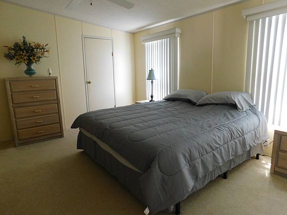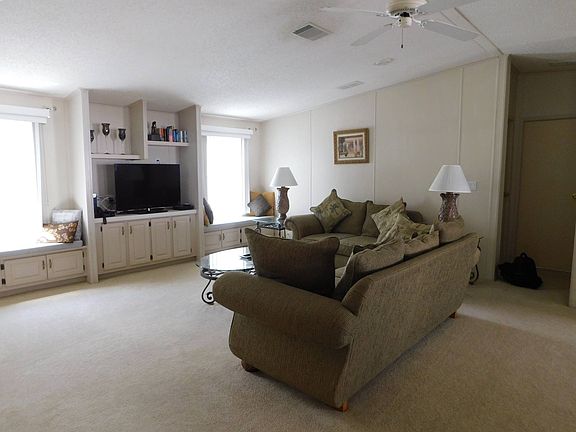 1993 Palm Harbor 3 bedroom/2 bath home with 1568 square feet. This home is open with split floor plan. The home has been freshly painted with new vinyl plank flooring in kitchen and baths. This home also have brand new roof and duct work. Master bedroom is large with walk in closet and en suite bathroom with additional closet and storage. Secondary bedrooms are also spacious. The kitchen has been updated, has loads of storage and eat-in breakfast nook. This home also has a separate laundry room. The lanai is in the rear with lovely view of water and golf course. This home comes completely furnished turnkey and also includes a golf cart. This home is offered for $165,000. Lot lease for this home is $965. The fees include the use of two pools, two hot tubs, fitness center, tennis courts, bocce ball courts, pickle ball, horseshoes, clubhouse, 24 Hour Manned guarded gate, lawn mowing and trash pickup. This community also offers 2 Golf courses, a (Championship Course and Executive Course) or you may purchase a membership or a 'pay as you play' option.