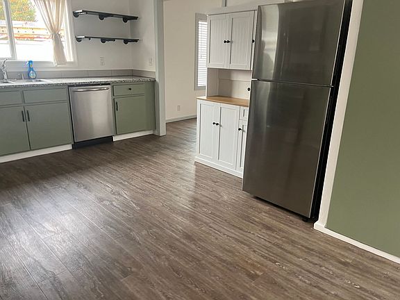 This charming single-family home features 3 bedrooms and 1 bathroom, perfect for those seeking a cozy living space. This home features stainless steel appliances, a garbage disposal, dishwasher and a built-in microwave. There is plenty of space for storage and parking in the detached oversized 2 car garage. The property sits on a spacious 1/4 acre lot with a fenced yard, ideal for outdoor activities and entertaining. Enjoy the convenience of a laundry room with hookups, ductless heat, AC pumps, and a natural well water supply(there is no water bill)! The home also features a skylight, and ample closet space for all your storage needs. Pet-friendly and with a private driveway, this lovely home in Junction City is the perfect place to call your own. $50 application fee per adult. Managed by Whittaker Investments, Inc.