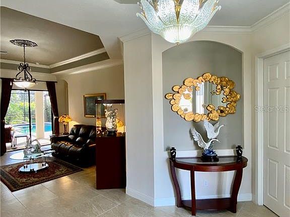4 bedroom and 3 full bath pool home of almost 3200 square feet. Huge private in law/teen apartment with bedroom, bath and full kitchen/living area. Will also make a perfect media room. 10 and 11 foot ceilings with extensive crown molding throughout. High end lighting fixtures including numerous Swarovski crystal fixtures and designer window treatments. Over 70K in added improvements both interior and exterior since purchase. Porcelain tile floors throughout except for 3 of the 4 bedrooms.
