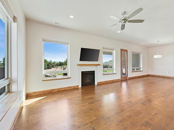 Come & see this beautiful & immaculate home in the desirable North area of Grand Junction. Located in the peaceful L&M Estates, you’ll find this house is ideally located for a nice, quiet lifestyle. First thing you will notice is the surrounding views! The Book Cliffs, & Grand Mesa right out the front door, & the Monument right out the back, the scenery is nothing but spectacular. The xeriscaped front yard is low maintenance & eye-catching as you stroll up to the home. The front of the home is also very easily accessible to all with no steps leading in & 36" width doorway. As you enter the home you’ll see a huge living room that absolutely capitalizes on the natural light from the large windows. The space has beautiful engineered hardwood flooring with knotty alder trim & gas fireplace that ties the room together. An office just off the living room comes with abundant space & is complete with built-in cabinetry made of that lovely knotty alder. The flow to the informal dining area & kitchen is excellent. The kitchen has a ton of cabinet & counter space, a sit up breakfast bar, an island, solid surface countertops, stainless steel appliances, ample electrical outlets, & an enormous pantry. Off the dining space are two well portioned additional bedrooms with lots of closet space & easy access to the full bathroom. The generously sized primary suite comes with a large walk-in closet & access to a four piece en-suite bathroom with a no step steam shower, & a dual vanity. A mud room in the back of the house provides access to additional storage, a half bath, & the massive four car garage. The garage offers radiant in-floor heat and is the ideal spot for all vehicle enthusiasts, those with lots of toys, or anyone with projects on their mind. In case you need further space & options there is an additional 24’x 36’ detached garage/shop. There is also an RV pad with electrical, water, & septic dump. The backyard has lots of room to roam & is beautifully landscaped. The patio is the ideal spot to relax as it provides shade in the summer & sun in the winter, it also includes an outdoor fan for airflow, a speaker system, & not to mention a hot tub to soak those cares away. The home is very energy efficient with owned solar, back up battery to power the home in an outage, tankless water heater, radiant floor heating, & a central vacuum for easy clean up. There is so much to see at this property. You will absolutely love it! Schedule a showing today!