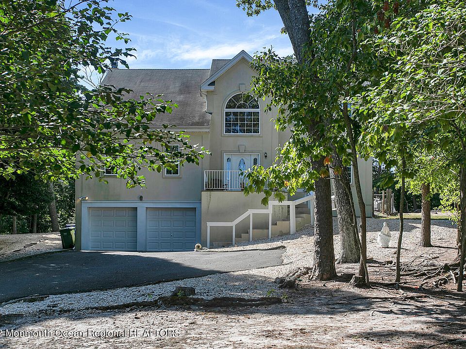 Custom home in the prestigious Country Club section of Brielle. 6 bdrm /2.5 bath home featuring 2 story entrance foyer, spacious living room & stately dining room perfect for entertaining. Oversized kitchen w/center island, cozy family room with wood burning fireplace & access to pool area. First floor also has powder room & two first floor bedrooms/offices. The 2nd floor offers a private master en-suite w/balcony overlooking the private yard & inground pool. Three additional bedrooms, full bath & laundry room. Basement with full walkout to garage. The backyard oasis offers you a lovely in-ground pool with paver patio & deck. The wooded landscape adds to the privacy of this special home