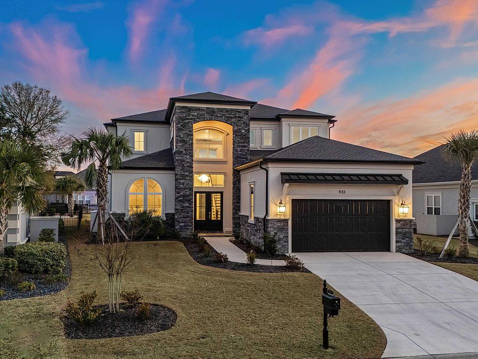 Experience luxury living at 933 Bluffview Drive in the exclusive gated community of The Bluffs on the Waterway. This stunning new construction home showcases exceptional curb appeal, featuring a stacked stone two-story covered entryway with large picturesque windows. The meticulous attention to detail is a testament to the builder's dedication to perfection. The design underwent several revisions to ensure an ideal layout, resulting in an abundance of natural light that fills every corner of this elegant residence. Upon entering, you are greeted by a breathtaking two-story foyer accented by a beautiful chandelier. The spacious master suite, located on the first floor at the rear of the home, features a luxurious bathroom comparable to a five-star hotel penthouse suite. Each bedroom in this home boasts its own ensuite bathroom, providing ultimate privacy and comfort. The heart of this magnificent home is the expansive open-concept kitchen, living, and dining area, perfect for entertaining large gatherings or enjoying quiet evenings. The kitchen is a chef’s delight, complete with a massive work island, high-end light fixtures, exquisite cabinets with glass doors, and a large pantry with cabinetry and counter space to keep small appliances accessible yet out of sight. Outside, you'll find a covered summer kitchen with a built-in BBQ and outdoor seating, ideal for al fresco dining and entertaining. The living room is adorned with custom built-ins, a cozy fireplace, and huge sliding glass doors that open to the outdoor space. Additional features on the first floor include a guest bedroom with an ensuite bathroom, an office, a mudroom, a large laundry room, and a half bath. Upstairs, you will find three more bedrooms with ensuite bathrooms, one of which is spacious enough to be considered a secondary master suite, along with a loft that provides access to a covered balcony. Other notable upgrades include high-end appliances, exquisite light fixtures, factory-tinted back windows, and a state-of-the-art three-unit HVAC system. Living in The Bluffs on the Waterway offers a luxurious lifestyle with amenities such as a large pool, two clubhouses, a private boat launch, boat storage, tennis courts, and a children's play area. The community is conveniently located near shopping centers, restaurants, golf courses, and the beach, providing easy access to all that Myrtle Beach has to offer. Don't miss this opportunity to own a piece of paradise in The Bluffs on the Waterway. Schedule your private showing today!