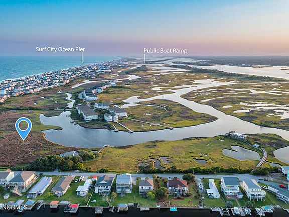 Looking for a PRIVATE SANCTUARY ON THE ISLAND nestled among the oak trees with water views from both directions? This UNICORN comes with two parcels totaling 9.6 acres with breathtaking views! Privacy is quite the luxury on any beach these days- especially in Surf City. This home has many places for the family to gather, eat and play! Boasting four bedrooms with multiple balconies, deck, porch and dock to take in the fresh air each morning as you start your day. You can wind down on the dock while fishing, bird watching or even watching the water flow across the salty marsh. Let's get back to the basics and spend time together, feel away from it all yet still close to restaurants, fishing piers, parks, boat ramps and more! The beach access is at the end of the street right by the playground! What a wonderful opportunity to make this your primary residence, second home or even an investment property. Since this GEM comes fully furnished--the only thing missing is you!