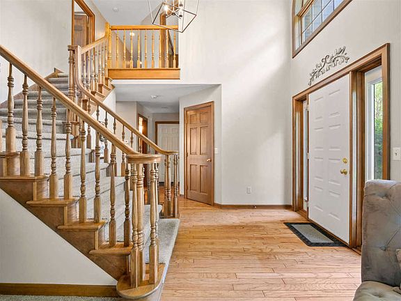 Nestled deep within the beautiful neighborhood of Woodland Lakes on a quiet cul-de-sac sits this stately home with 4 large bedrooms, 2 full and 2 half baths! Nature lovers will love the wooded back drop with a walking path into the woods and the pond view from the side of the back balcony! The walk out basement has a large bar area and lots of room to entertain! It also leads out to another patio! The unfinished area makes a great work shop or work out room and another room for storage! Inside the home is meticulously cared for! Beautifully decorated and ready to move into. From the front formal sitting room to the open kitchen overlooking the large family room with a fireplace and lots of natural light from the large windows. The A/C was replaced in 2023. This home will check all your boxes! The neighborhood has a beautiful pool, walking trails, ponds to fish in and so much more. Close to restaurants and shopping, you won’t want to let this one pass you by.