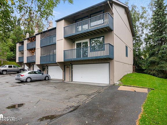 Move In Ready! Executive style townhome, private & secluded, 2 masters with private baths, huge garage with extra room forshop, storage, gym. New interior paint & carpet. End unit & additional parking. Convenient Midtown location close to downtown, Westchester Lagoon & Valley Of The Moon Park. Incredibly stable complex! This condo is a gem! Home Warranty Included! Click here forNewer water heater and furnace Quartz counters in kitchen Granite counters in baths New gar door & opener Shop in back of garage Fenced yard One of only 2 units that have rear decks, Two front decks with views of the city and mountains. Central vac with attachments and hose. Updated with forced air gas heating. Seller kept the original electrical baseboard heat for backup. Normally not used unless below zero. Additional paved parking for this unit. What the seller loves about this home: Location: Walk to the Spenard Farmer's Market, Bear Tooth, Fire Island Bakery, Westchester Lagoon, Downtown Anchorage. Right off the Chester Creek trail with easy access to the Coastal Trail to the west or Umed area to the east. Groomed skiing from the house in the winter. No traffic on this dead-end street. Community: Great neighbors, lots of other families and mostly owner occupants who they have gotten to know over the years in this quiet little corner of Valley of the Moon. -Views of the mountains and downtown skyline off of both decks, awesome views of the Northern Lights in the winter. -Side yard where we have built sledding luges, hosted pandemic graduation ceremonies, had countless BBQs. End unit with our own corner of the parking area for bigger get-togethers out front and along the side. -Plenty of deck space for porch gardening every summer -Love the kitchen designed it themselves with functionality in mind. -Giant garage (for parking, storing camping gear, bikes, skis, motorcycles, etc), efficient living space with open floor plan, large master bedroom with full bath and walk in closet -All things that can be hard to find in this part of town.