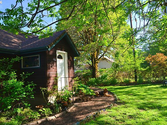 Nicely remodeled 1946 cottage just outside Cottage Grove. Backyard sanctuary with many established perennial plants, vegetables,& fruits, (apple, pear, fig). Fenced yard with access to year round creek. New well pump and pressure tank. Shop for hobbies, storage, etc., along with an additional small out building and dog kennel. Cute, cute, cute. Perfect for the buyer wanting the country feel. Septic pumped in 2015.