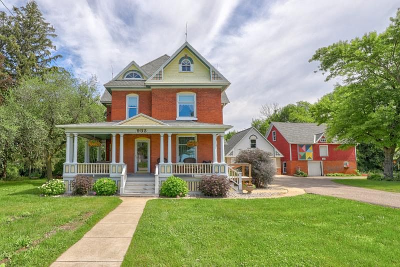 Turn back the clock with this 19th century Victorian charmer that offers a few modern touches, river frontage and lake access and storage buildings. This 3 story brick home with finished basement has just over 3400 sq. ft. of living space, including 4-5 bedrooms and 5 baths. When entering the home from the cozy wrap-around porch, the original door and woodwork of the stairway set a welcoming tone that is felt throughout this home. The rooms are spacious, boost original woodwork and feels open and bright. On the first floor of the home is a kitchen (16x12), dining room (12x17), living room (15x19), den (14x14), office (12x12) and laundry and bathroom. The second level of this home offers 3 bedrooms and a bonus room, which could be utilized as an additional bedroom. The master suite is (13x13) and includes a county bathroom with a claw foot tub. The other two bedrooms are (13x12) and (14x11). There is a second set of stairs at the back of the home that leads from the second floor down to first floor to sneak to the kitchen for a late night snack. The remodeled 3rd floor could be a guest area. The 3rd floor area includes a high ceiling, large living(18x15) room with its own bath and bedroom(14x11). The finished basement of this home includes a second kitchen and bathroom which is enhanced by exposed brick that give the area a contemporary industrial feel. The brick floor in the front room of basement really set the tone of the history of this home. Once you are outside there are numerous extras to enjoy. The front wrap around porch is a great place to spend the mornings or evenings with a cup in hand. If you are a boater, the river out back has its own dock and its just a short ride to the Saginaw Bay where one can spend hours catching fish for dinner or just release them back. If you want to raise your own livestock, the property offers 4+ acres to have a hobby farm. Besides the detached garage(26x24) with loft area, there is a barn (36x26), livestock shed with lean-to(14x20) and a fabric barn (20x30x16). The roof on the home, garage and barn are all new in 21'. The boiler for the home was new in 19'. This is a once in a lifetime opportunity to own a piece of history. Make this the next place for all memories with family and friends.