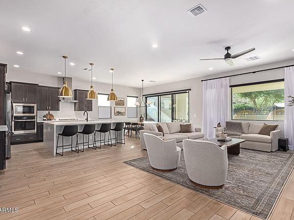 Welcome to this gorgeous gem showcasing a 4-bedroom home with an additional den, offering breathtaking South mountain views. This exceptional property combines high-end living with tranquil surroundings, ideal for those seeking both comfort and elegance.