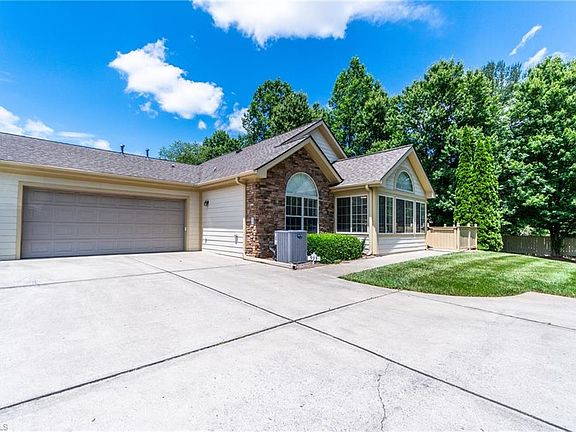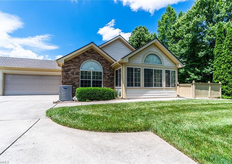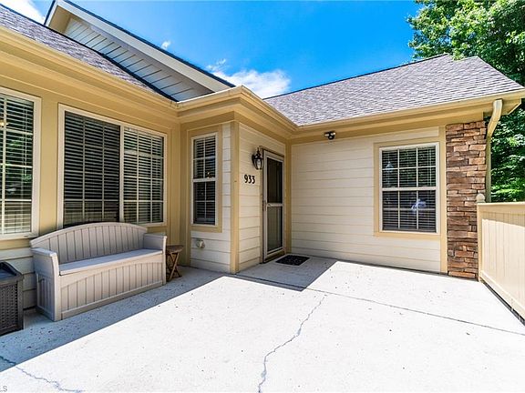 This MOVE IN READY townhome is the perfect new home for a buyer who is looking for the convenience of townhome living and values a tremendous amount of privacy. Mature trees line this lot to provide ultimate in privacy, birdwatching & shade. Soaring vaulted ceilings. Brand NEW paint & NEW carpet throughout. Brand NEW stainless appliances, roomy pantry & upgraded ACACIA cabinets in kitchen.Washer & dryer in unit covey with sale. Each bedroom features abundance of closet space. Primary bathroom has newer walk in tile shower. NEW toilets in both baths.Furnace & AC replaced in last 3 yrs. Roof replaced 2 years ago. Gas logs recently cleaned & inspected. HOA features clubhouse & upgraded salt water pool. Two car garage.Larger sized patio w/porch enclosures available for purchase from HOA approved vendor. GSO Police Officers given access to clubhouse for meals/breaks, provides extra security presence.
