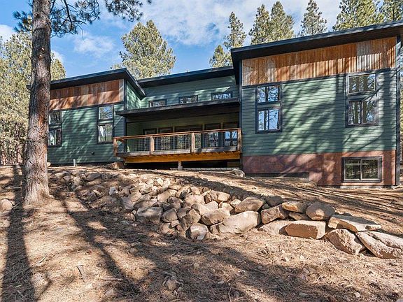 Experience the perfect blend of rustic mountain charm and modern elegance in this stunning new 2-bedroom, 3-bath mountain contemporary home, featuring a generously sized office that can serve as a third bedroom. Spanning 1,824 sq ft, this thoughtfully designed home includes a 429 sq ft attached 2-car garage and is set on a private 3.14-acre lot, surrounded by towering pines for ultimate peace and seclusion. The vaulted ceilings and sun-drenched great room, highlighted by a dramatic wall of windows, open onto a spacious covered deck—perfect for taking in the breathtaking views of the southern mountain ridge. A cozy fireplace anchors the living room, adding warmth and ambiance. The open-concept kitchen is a chef’s dream, boasting custom alder wood cabinetry, quartz countertops, a large island with seating, and sleek stainless steel appliances. Built for durability and style, the home features a metal roof, horizontal fire-resistant lap siding, and metal sheathing for enhanced snow protection. The interior showcases a beautiful mix of wood, luxury vinyl plank, carpet, and tile flooring, creating a warm and inviting atmosphere. Designed for efficiency and comfort, the home is equipped with a heat pump cooling and heating system for year-round climate control. A high-producing artesian well provides a reliable water source. Nestled in a sought-after subdivision with private access to the National Forest, this mountain retreat offers the perfect balance of privacy, adventure, and modern convenience. Ideally located between Lemon and Vallecito Reservoirs, it provides easy access to outdoor recreation while maintaining a serene mountain escape.